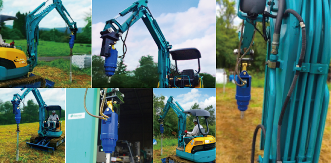 別売のアタッチメントを装着すれば建柱、フェンス基礎などシステム廻りの掘削にも使えます
