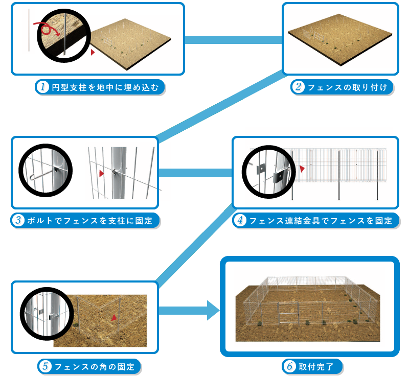 太陽光発電所のフェンスだけでなく、果樹園や菜園など様々な用途・目的でご利用いただけます。