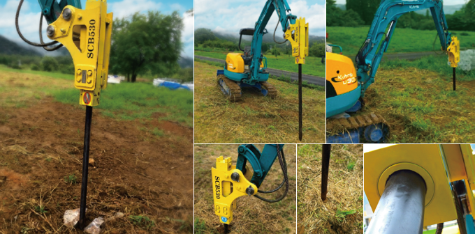 別売のアタッチメントを装着すれば建柱、フェンス基礎などシステム廻りの掘削にも使えます