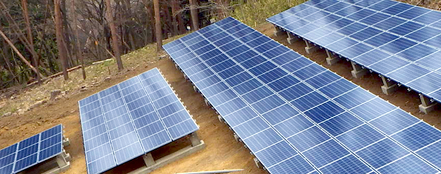 急な傾斜地、複雑な屋根上、限られた設置面積、読みづらい日照環境や季節による天候など、難解な立地にも対応できる設計力・施工・技術力があります。