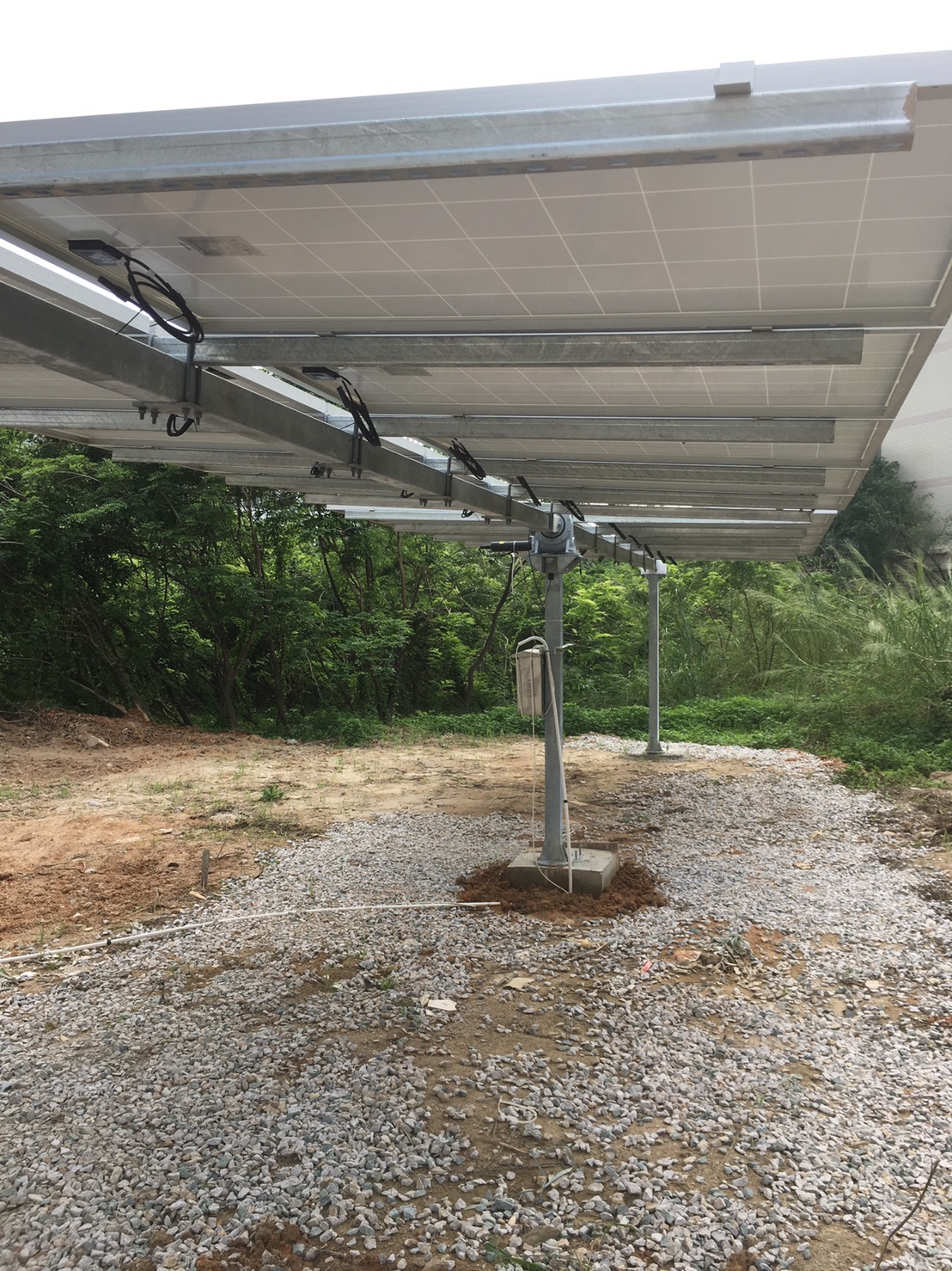 そこでまだ発電していませんが、追尾型太陽光発電がありました。太陽の動きに応じて実際動いていました。