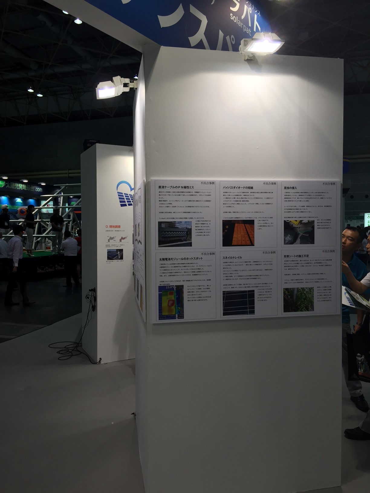 太陽光発電のシステム、施工、蓄電池、メンテナンスなどの出展ブースがありました。