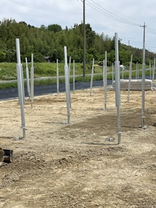 地盤調査、引き抜き試験等を無事終了し、架台の組み立てが始まっております。