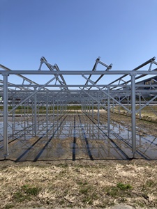 自家消費のため、産業用蓄電池の選定や補助金のための耐震Sクラスの架台選定などまだまだ勉強中、試行錯誤する部分もありますが、グループ内では自家消費の部材選定、施工管理、メンテナンスの仕組みづくりも構築できつつあります。