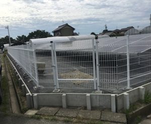 弊社ではアルミ架台とあわせ、メッシュフェンス、コンクリート基礎、打ち込み用の2パターンを用意し