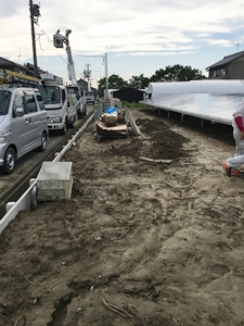 梅雨空ですが、晴れ間を逃さないよう施工していきます。