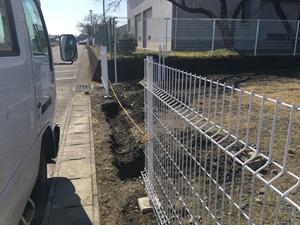 東側門扉の大きさが変更になったので、基礎穴だけ掘ってあります。