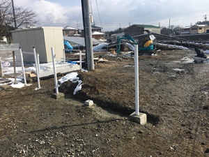 まだ雪が残ってますが門扉の支柱がなんとか完成しました!