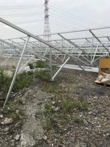 ビークレルの工事受けであった杭打ち、アンカー施工も無事終わり、架台組みも最終段階です。