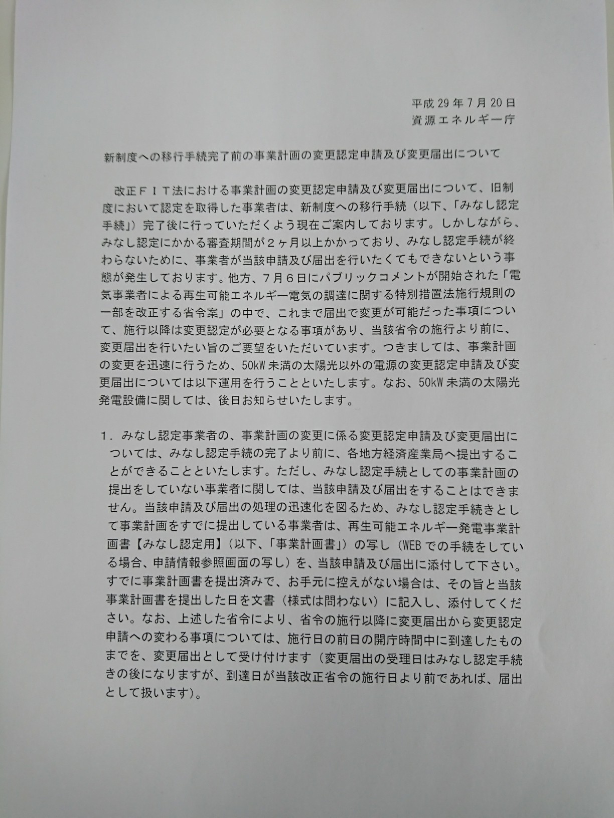 申請中の案件がどうなるか否かは不明ですが、増設案件でまだ変更申請が終わっていない案件