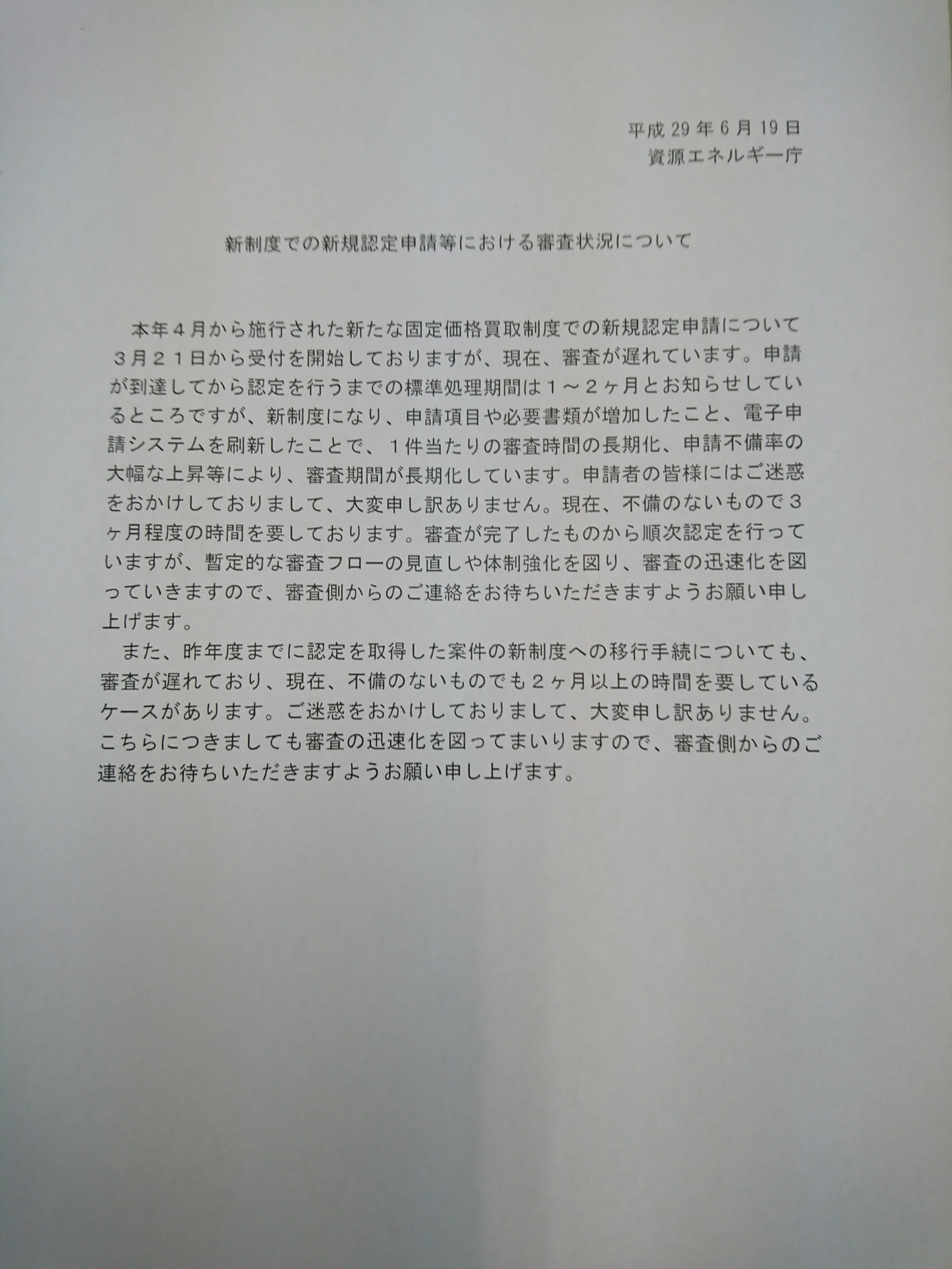 平成29年4月1日より施工されました、改正FIT法に伴い先日、FIT認定遅延問題